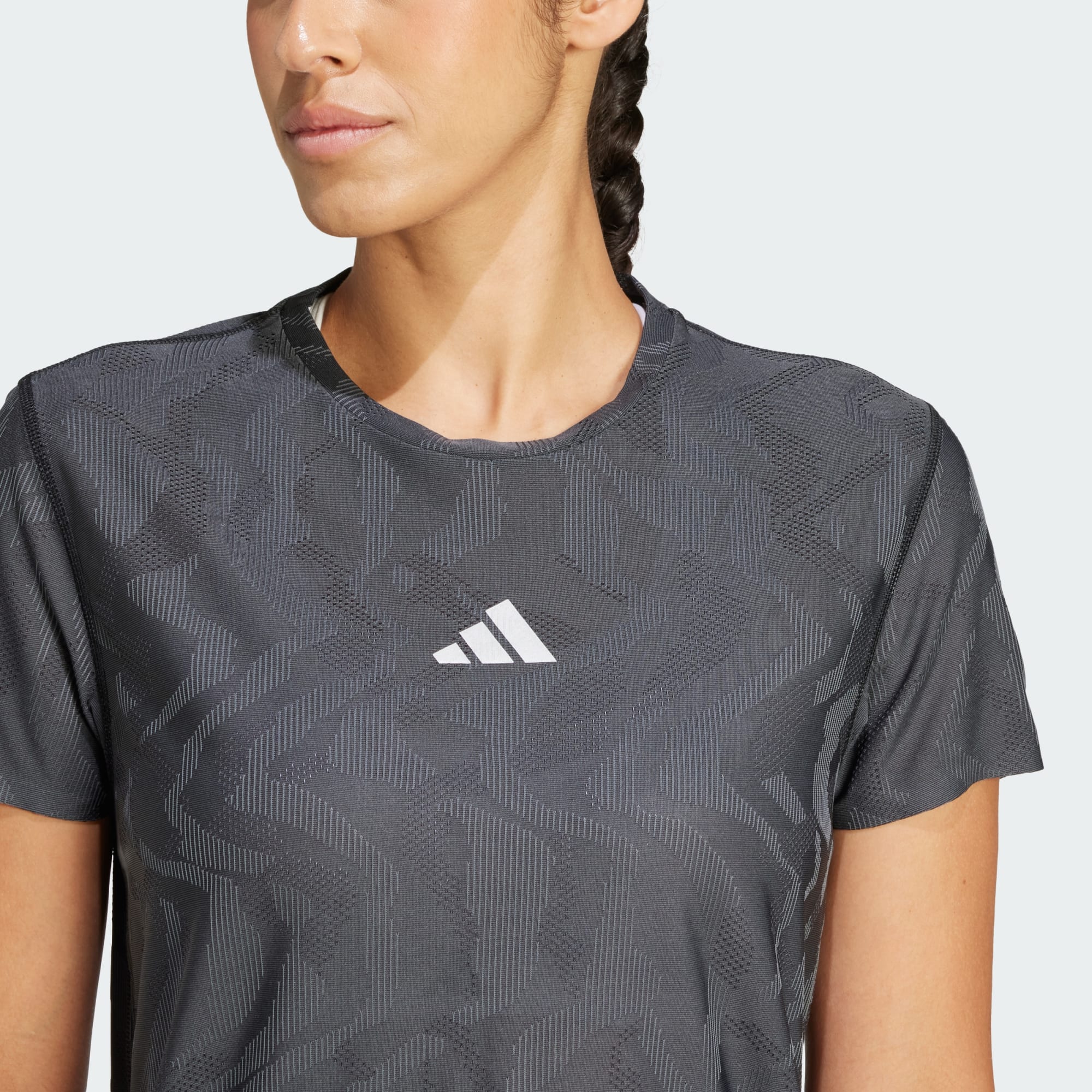 Una T-shirt da running con tecnologia CLIMACOOL+ per prestazioni avanzate.