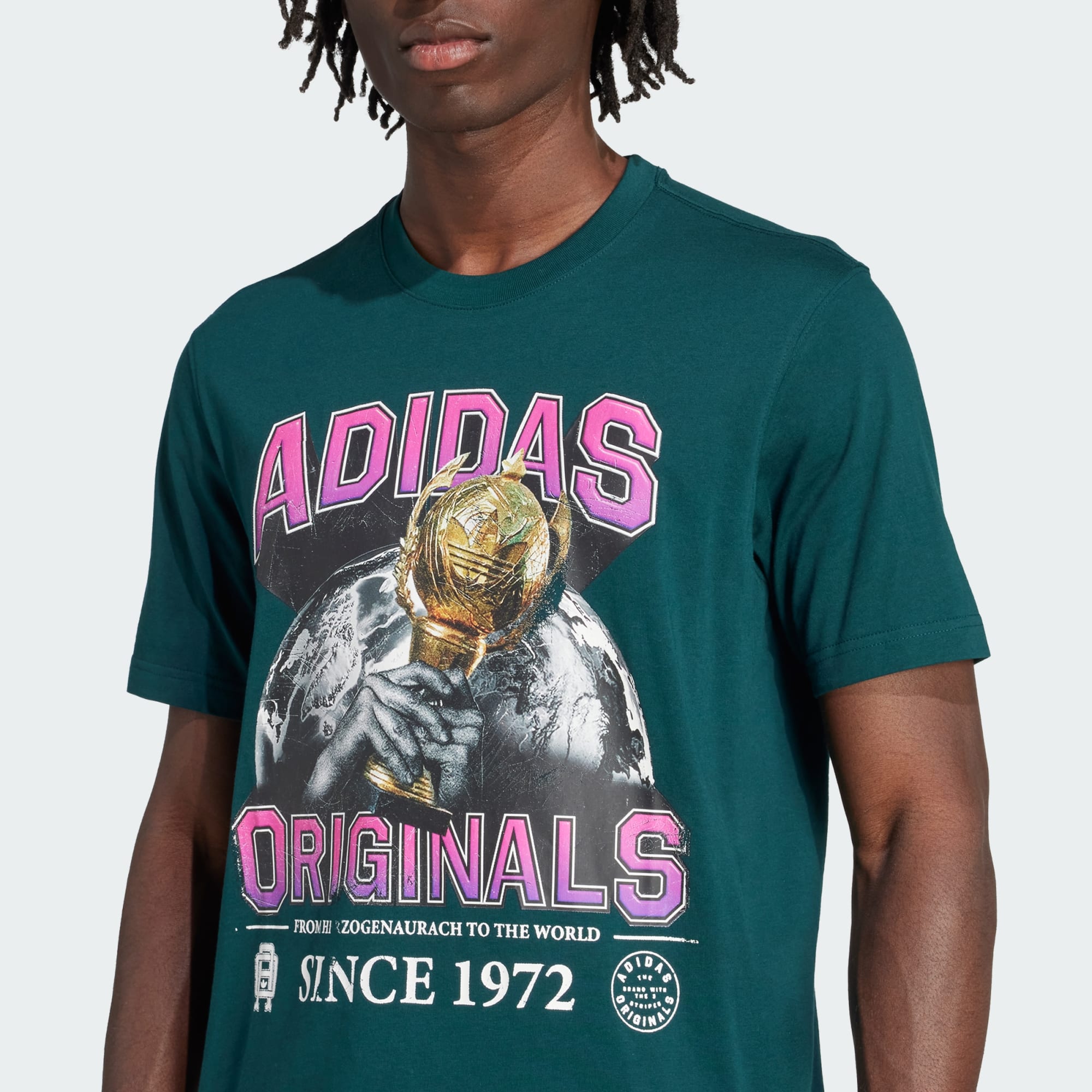 Lascia il segno con questa t-shirt adidas. Il morbido cotone lo rende il capo perfetto da indossare tutti i giorni, mentre la grafica audace sul davanti mette in risalto la tua grande personalità. Abbina questa t-shirt ai tuoi jeans e scarpe da tennis preferiti per un look disinvoltamente cool.