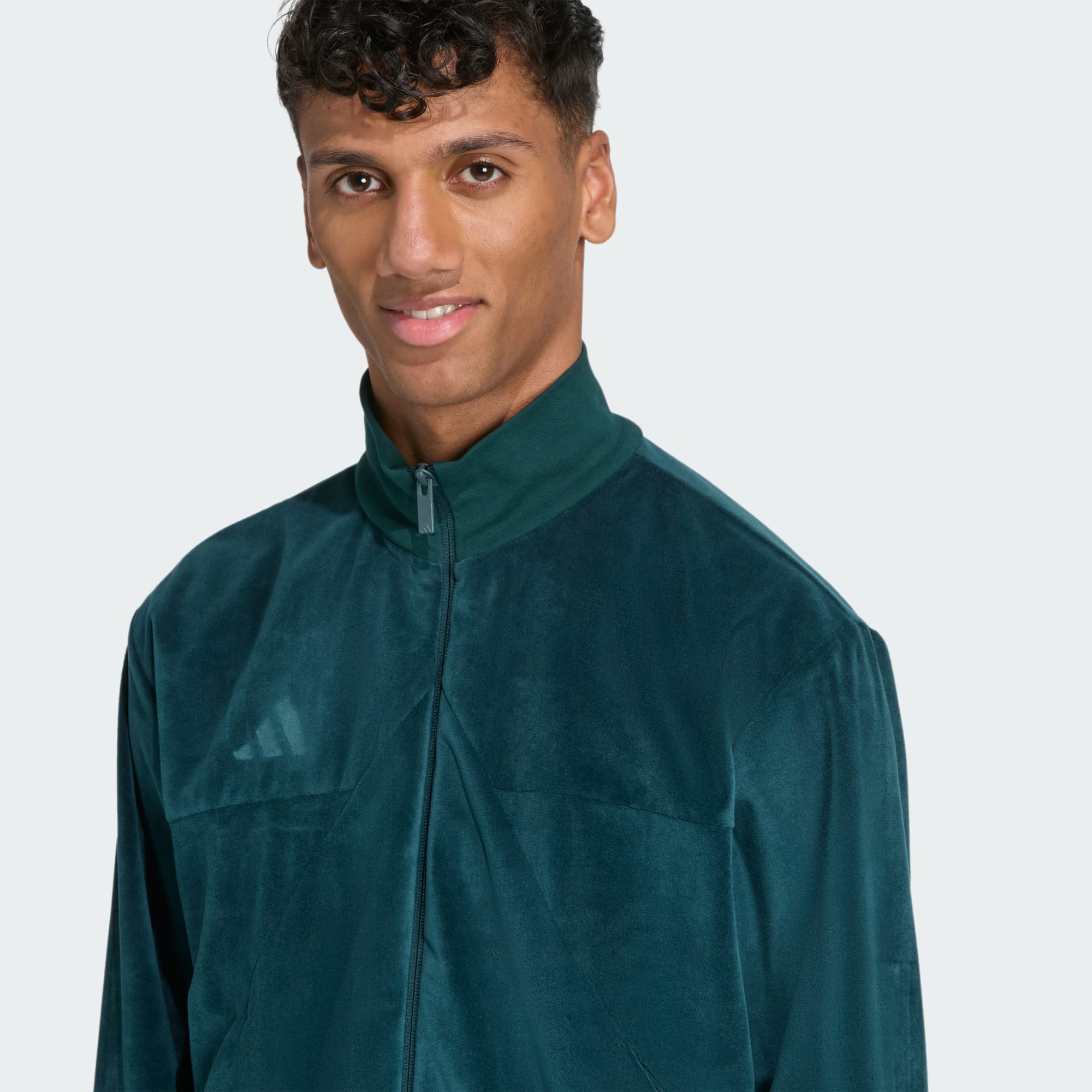Una lussuosa track jacket in velluto dallo stile sportivo ed elevato.
