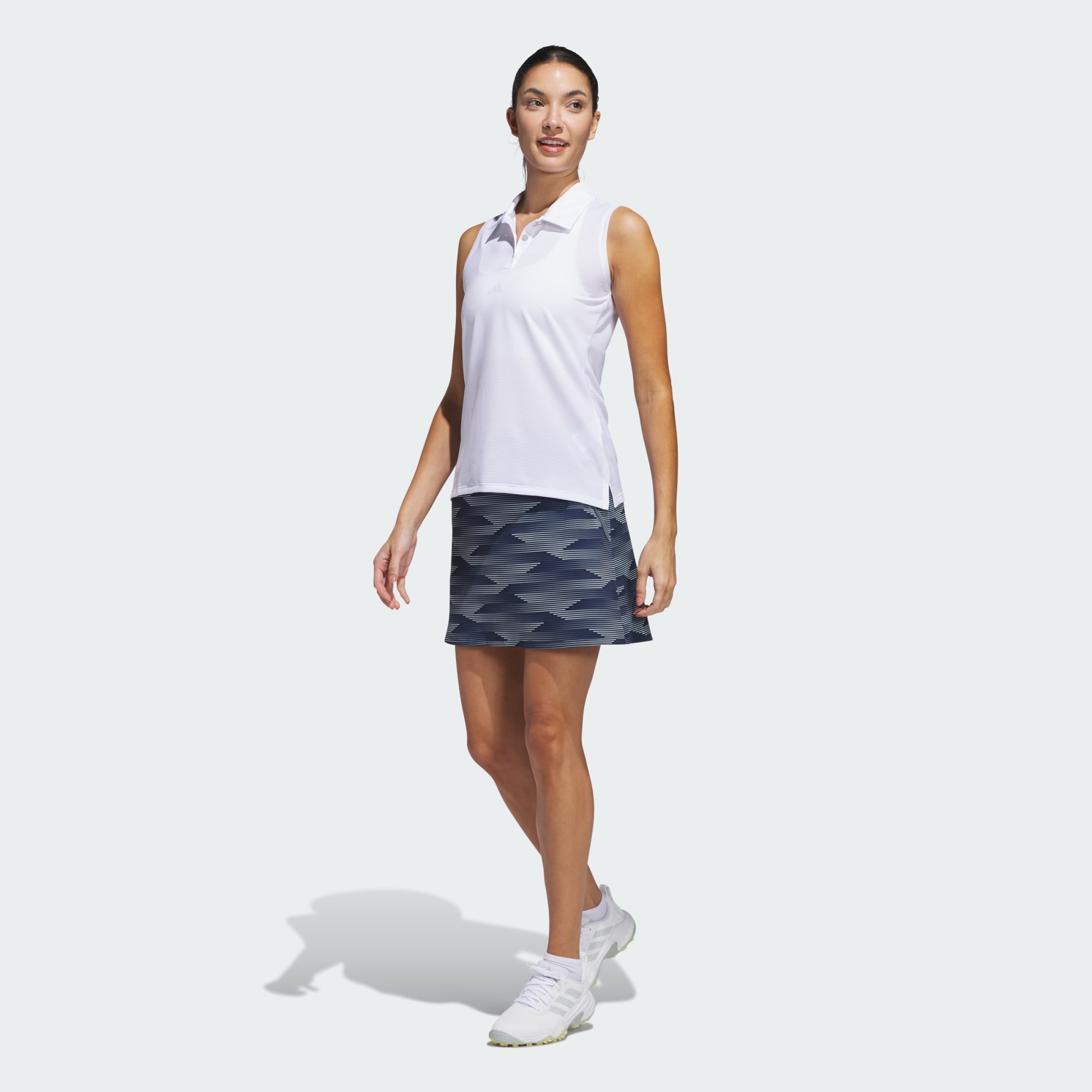 Enjoy all-day comfort and effortless movement in this adidas golf skort. A wide stretch waist supports you through 18 holes and beyond, and the sporty style wears well on and off the course.