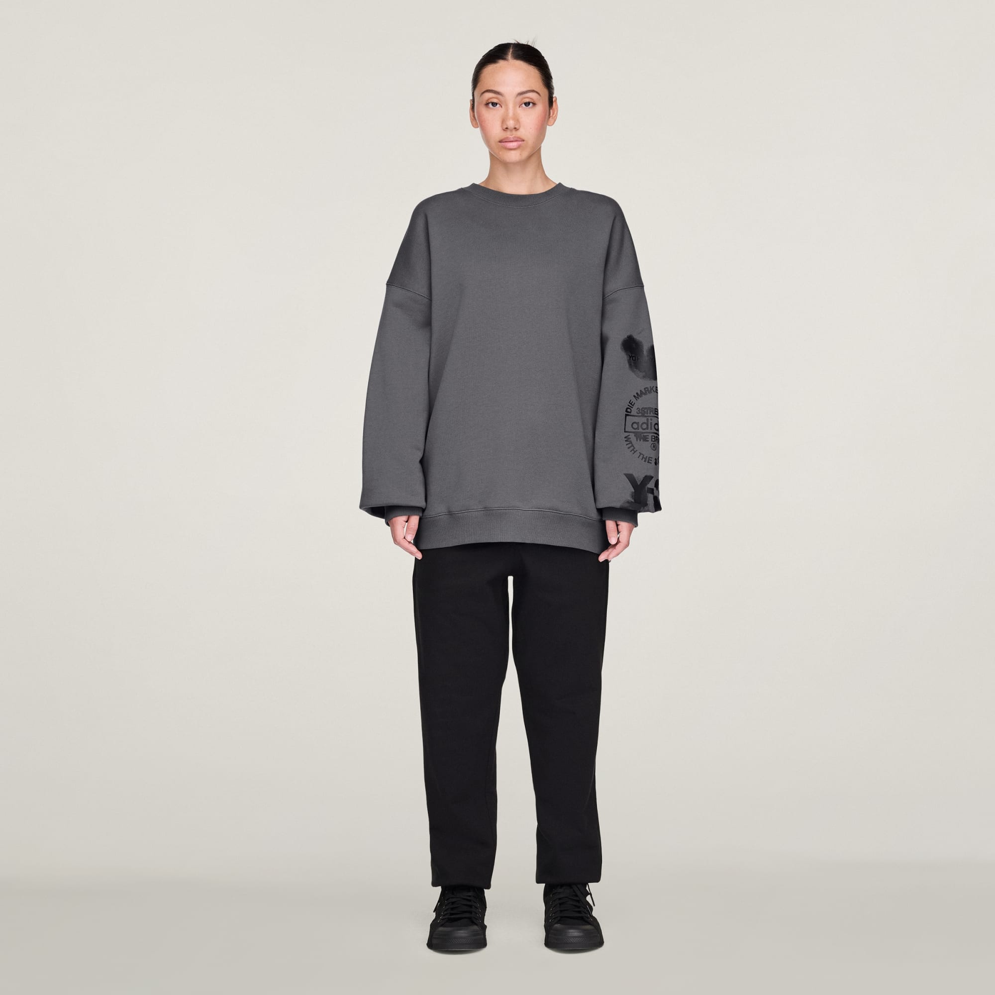 Y-3 esplora il contrasto tra l'eredità sportiva e la moda di alto livello, con una fusione che trova espressione nel logo della Y-3 Graphic Crew Sweatshirt. Realizzata in morbido cotone french terry, questa felpa girocollo si caratterizza per la forma oversize e i dettagli a coste.