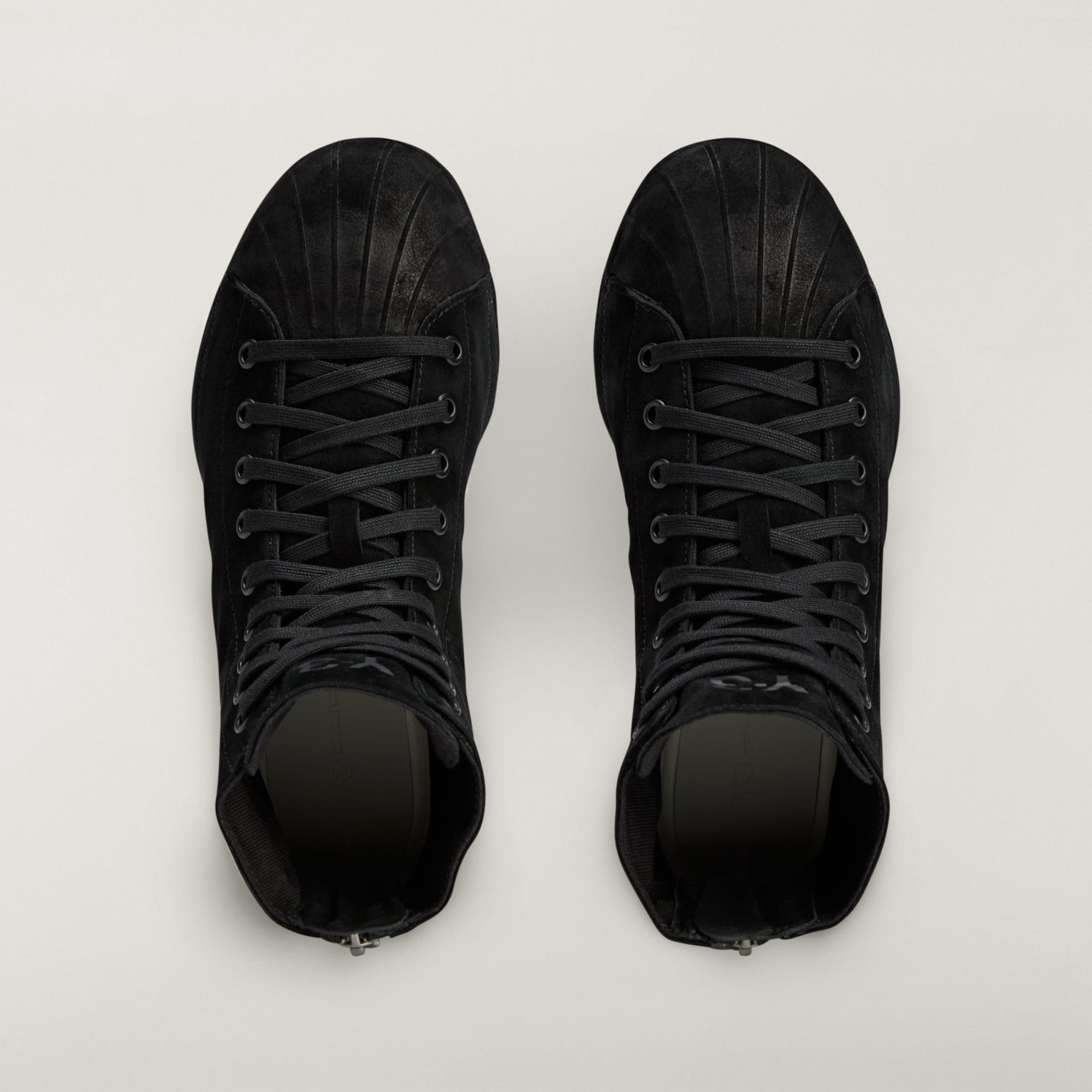 Con questo modello, i mondi delle scarpe adidas Superstar e Nizza si scontrano. Basato sulla stessa struttura ultra-progressiva dell'intersuola delle Y-3 NIZZA, questa silhouette dal taglio alto è realizzata con una tomaia in suede che si estende fino alla suola - compresa l'iconica punta a conchiglia delle scarpe adidas Superstar - per creare un look distintivo ma estremamente minimalista. Inoltre, la scarpa è dotata di una zip sul tallone per facilitare l'accesso. Queste scarpe sono rifinite con il logo Y-3 sulla linguetta e l'esclusivo di Yohji Yamamoto sul rinforzo sul tallone.