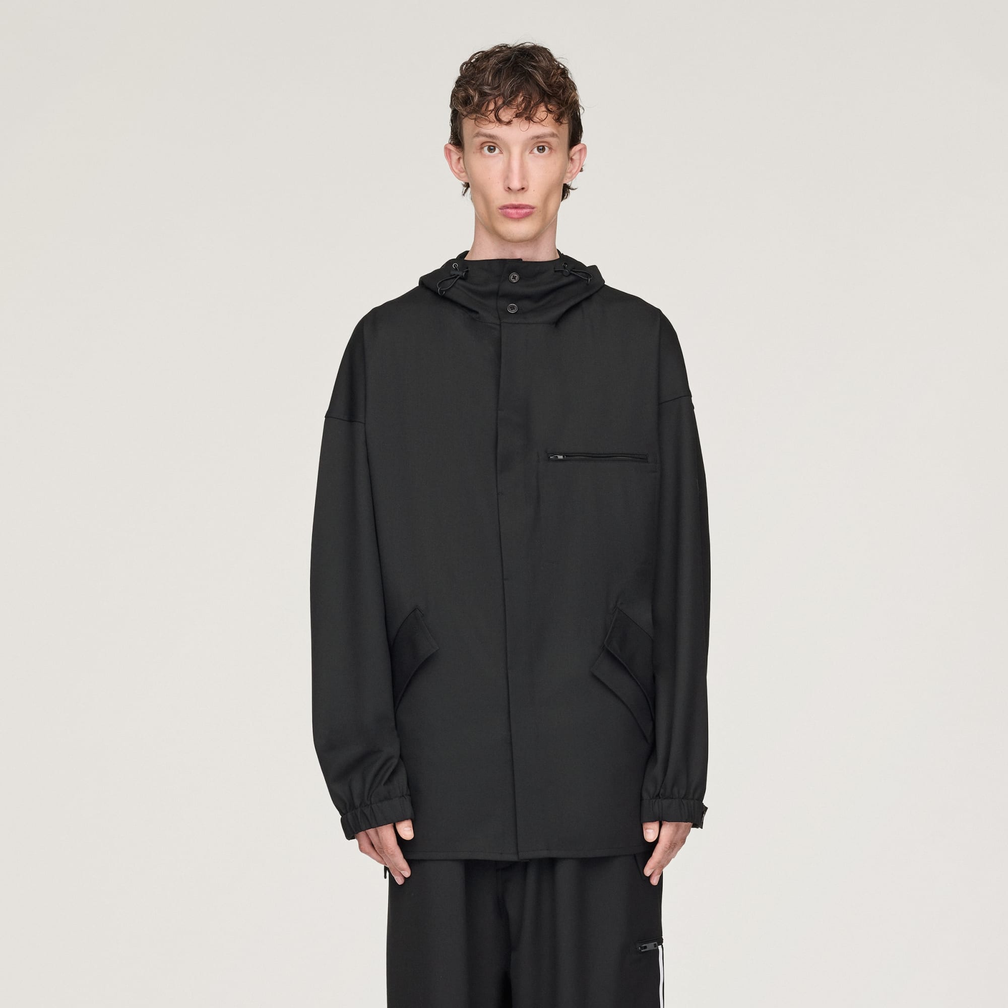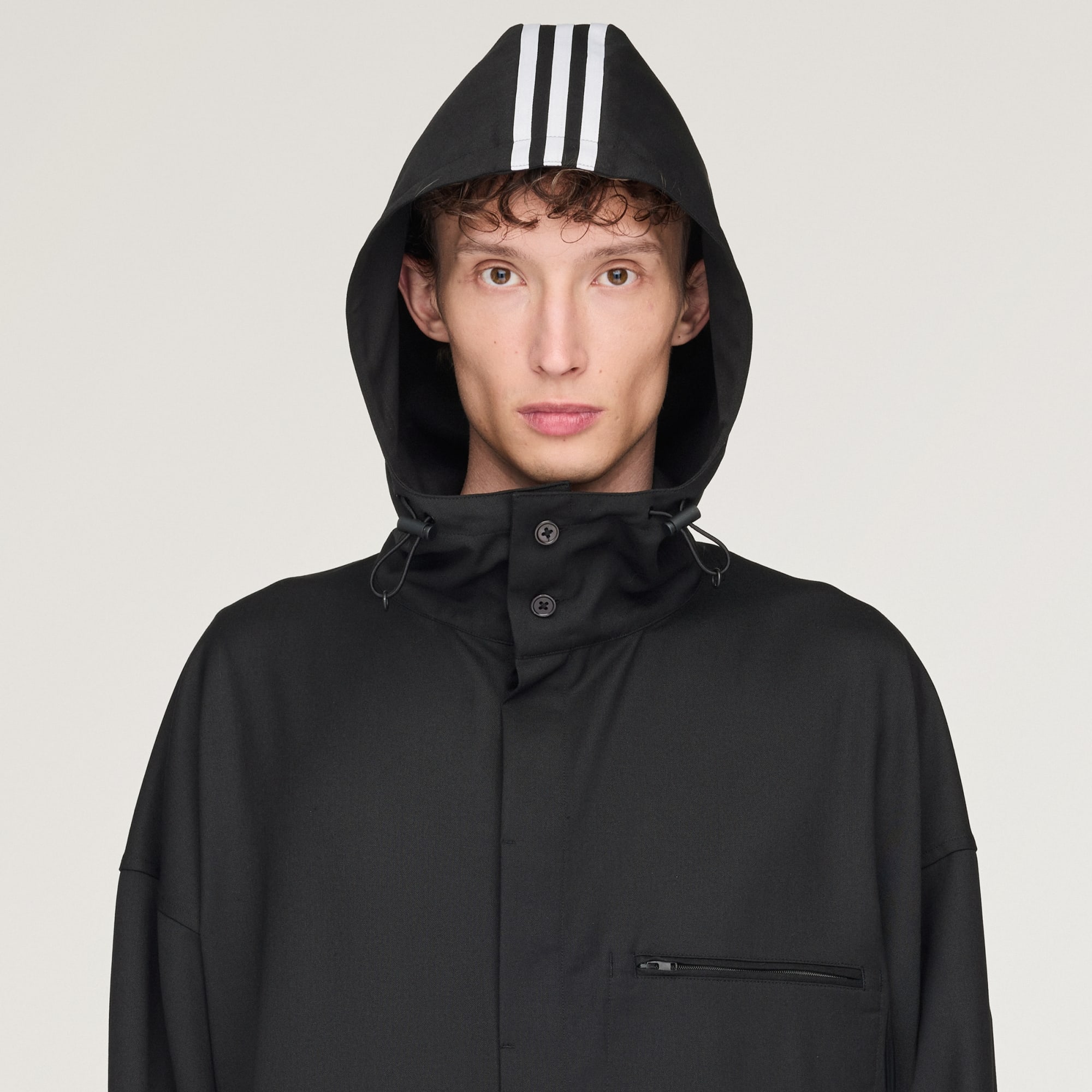 La Top con cappuccio Y-3 Refined Wool è realizzata con un tessuto in misto lana che offre calore, morbidezza ed elasticità. Ampia e lunga, si abbottona fino al colletto ed è dotata di un cappuccio regolabile da usare quando serve protezione aggiuntiva. Ha tasche per gli oggetti essenziali e polsini elasticizzati, che tengono le maniche sempre a posto.