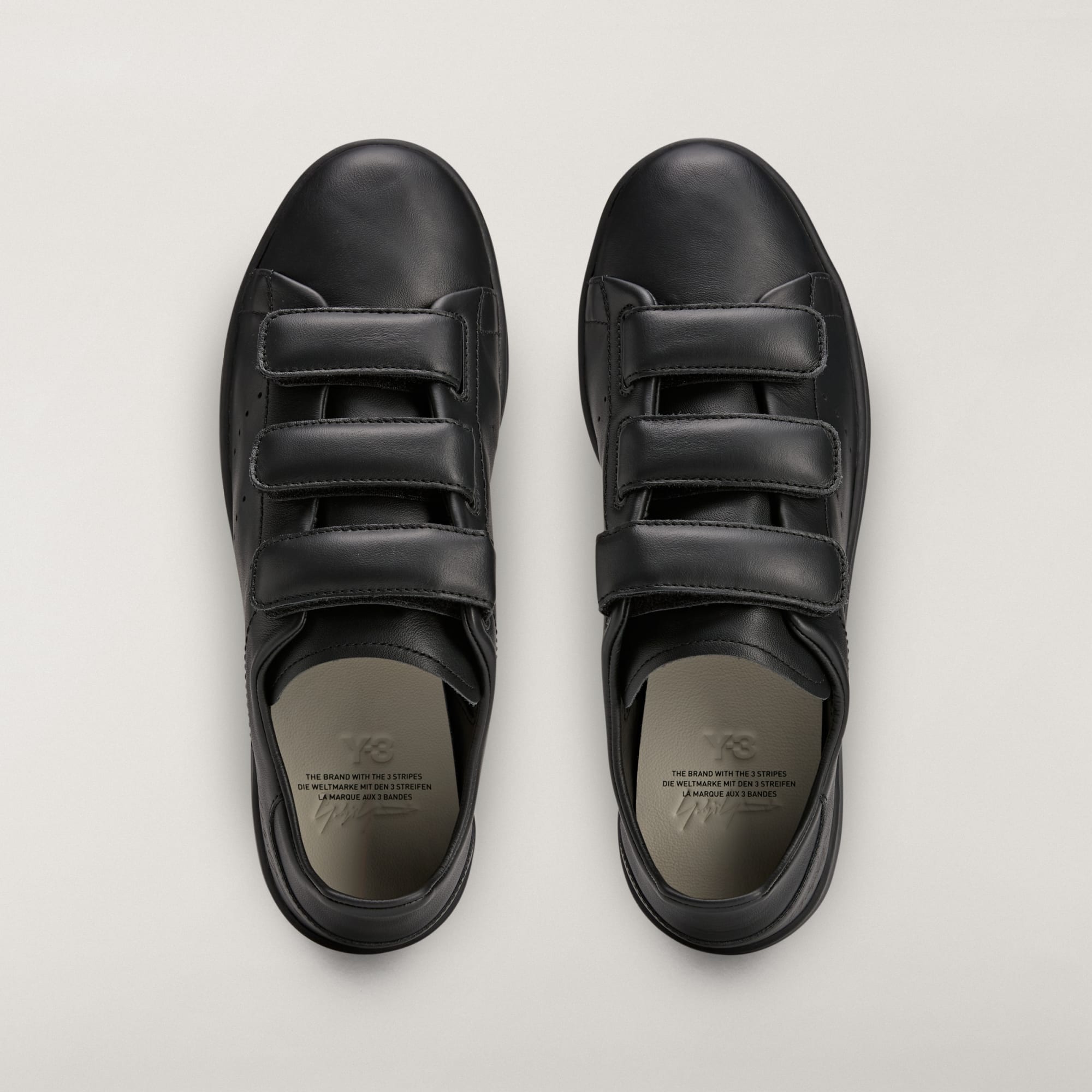 A hook-and-loop version of the Stan Smith shoes crafted by Y-3.